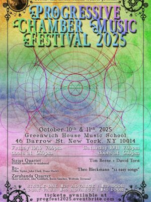 Das „Progressive Chamber Music Festival“ sprengt die Grenzen zwischen Kammermusik, Jazz, Avantgarde, Folklore, Pop, Hip-Hop u.a. Genres zeitgenössischer Musik. Es lässt die verschiedenen Stile und klanglichen Richtungen auf oftmals überraschende und kongeniale Weise miteinander verschmelzen.
