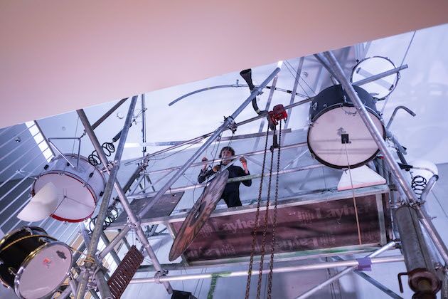 Mit Raise the Roof widmet das Institut Mathildenhöhe Darmstadt der international renommierten Installations- und Performancekünstlerin Nevin Aladağ (*1972, Van, Türkei, lebt und arbeitet in Berlin) vom 29. Juni 2025 bis 1. Februar 2026 die erste große Einzelausstellung einer zeitgenössischen Position im historischen Ausstellungsgebäude seit dessen Wiedereröffnung im September 2024. In ihren multimedialen Arbeiten verknüpft die Künstlerin Skulptur, Malerei, Textil, Video und Klang auf spielerische, oft humorvolle Weise. Über das Prinzip der Collage schafft sie überraschende Beziehungen – zwischen Kunst und Musik, aber auch zwischen Geografien und Kulturen. Die Schau versammelt auf über 1.000 Quadratmetern Ausstellungsfläche rund 40 Werke aus den Jahren 2012 bis 2025 – darunter einige neue Arbeiten, die erstmals in einer Museumsausstellung präsentiert werden.