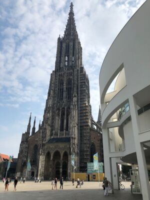 Der gebürtige Ulmer Jürgen Grözinger, der heute in Berlin lebt, absolvierte ein klassisches Musikstudium mit Hauptfach Perkussion in München und in Stuttgart mit einem anschließenden Aufbaustudium Kulturmanagement in Hamburg. Nach vielfältigen Tätigkeiten im klassischen Umfeld gründete er 1996 das Ensemble European Music Project dessen künstlerischer Leiter er ist. Seit 1996 kuratiert er das Festival neue musik im stadt- haus ulm, das seit 2020 „KlangHaus“ heißt und biennal und das nächste Mal vom 16. bis 19.4.2026 stattfindet. Zeitgenössische Kammermusik, Elemente der Pop- und Club-Musik, experimentelle Klänge, europäische Traditionen, außereuropäische Einflüsse, ganz herausragende Musiker:innen fast hautnah zu erleben, oft in einer überraschend ungewöhnlichen Bespielung des Raumes – all dies kommt im KlangHaus live zusammen. Große Kom- ponisten wie Michael Nyman, David Lang, Klaus Huber, Samir Odeh-Tamimi, Bernd Franke oder Dieter Schnebel waren im KlangHaus persönlich zu Gast.
