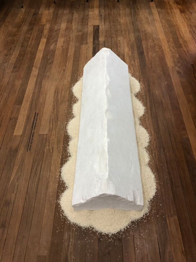 Darüber hinaus werden auch einige Werke aus der asiatischen Kunst gezeigt, die für Laibs Arbeit ebenfalls prägend waren – vor allem aus Indien. Besonders hervorzuheben ist eine bedeutende Leihgabe aus dem Museum Rietberg: eine Marmorstatue aus der indischen Jain-Tradition, deren Philosophie der Gewaltlosigkeit Laib tief beeindruckt. Die Figur zeigt den Jina Rishabha, den ersten von 24 heiligen Lehrern der Jaina-Lehre, und stammt ursprünglich aus einem rituell-religiösen architektonischen Kontext.